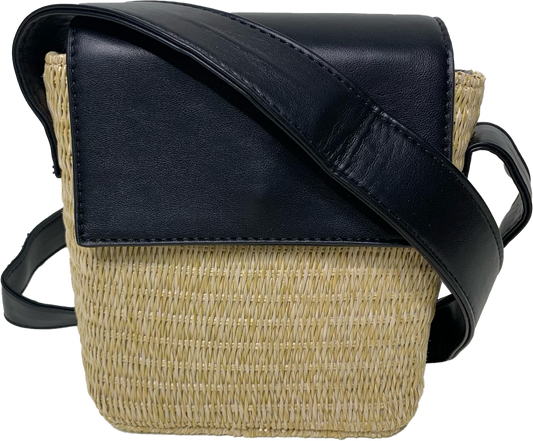 Basket Weave With Faux Nappa Leather Crossbody Bag-The Celeste