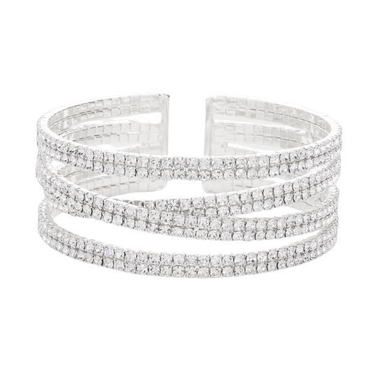 Rhinestone Pave Crisscross Cuff Evening Bracelet