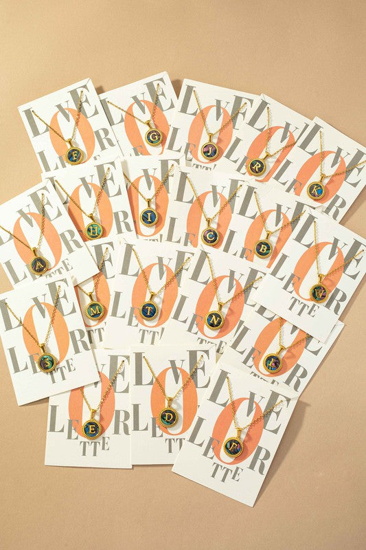 Brass abalone shell inlay initial pendant necklace