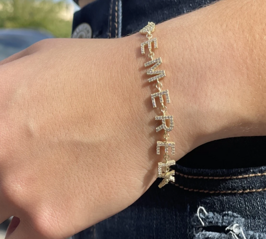 Customizable Link Bracelet with CZ heart