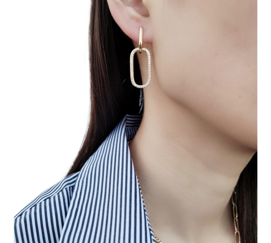Rounded rectangular hoop earrings with cubic zirconia rounded rectangle - removable so you can add a different charm or wear it plain for a variety of different look.