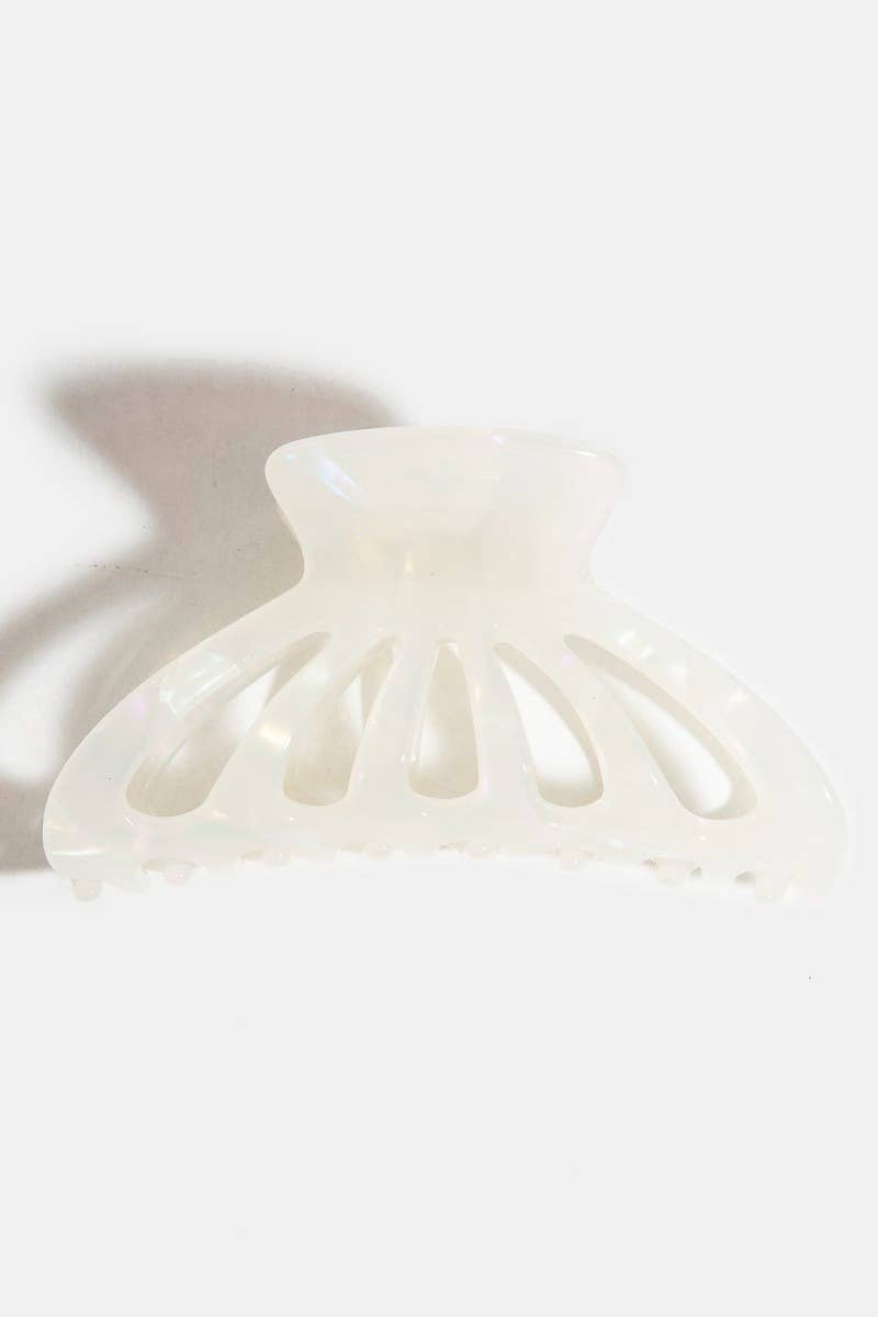 This hair claw brings a stunning iridescent white style. Witness the transformative power of accessories as this piece effortlessly redefines your fashion narrative.