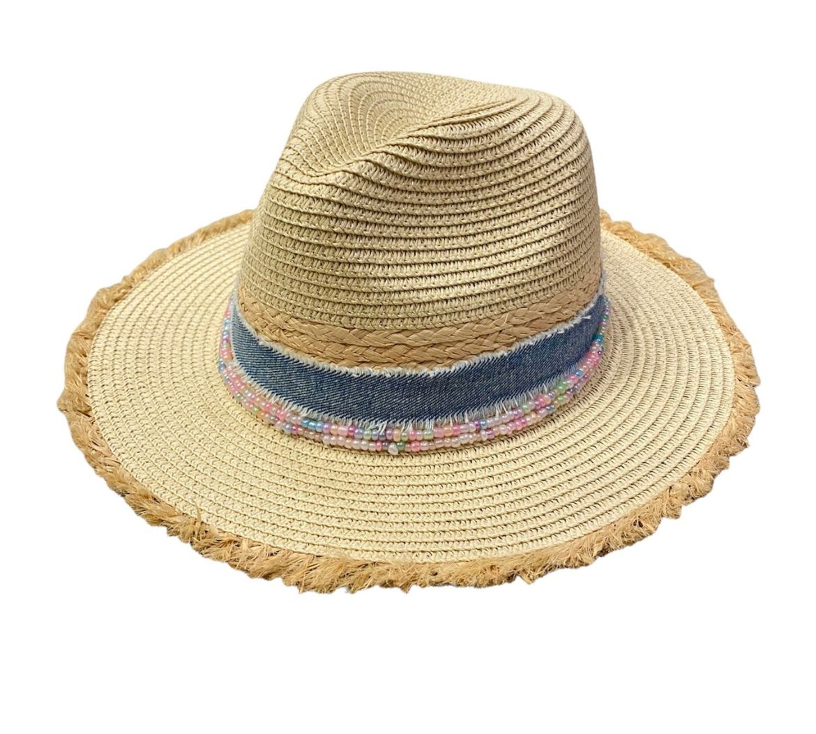 Westhampton/Frayed Light Straw/Light Denim Band/Pastel Beads